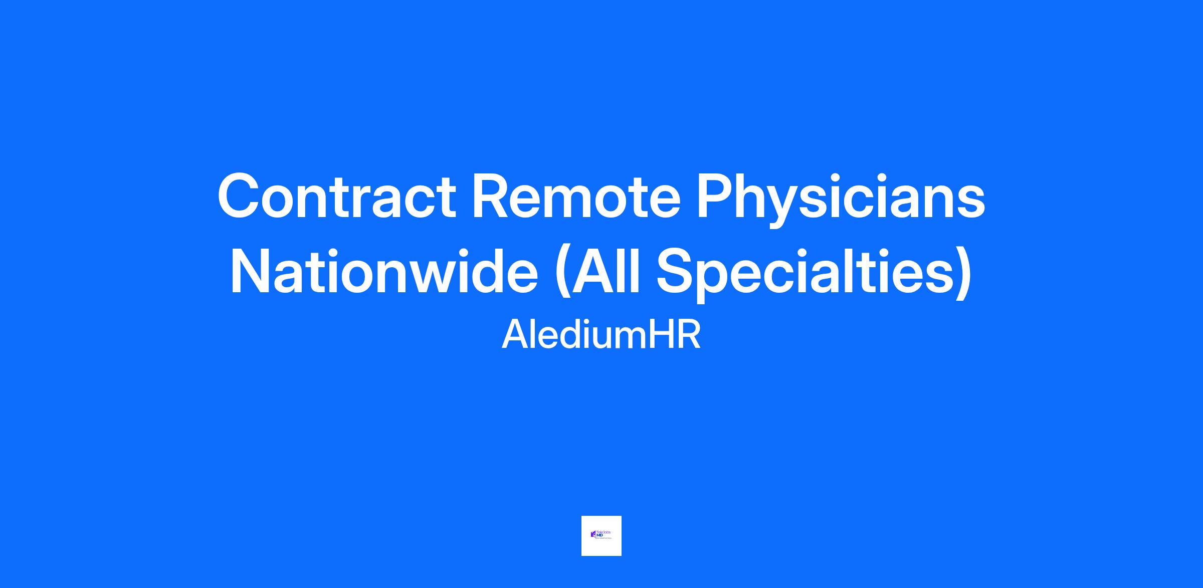 AlediumHR places physicians with leading health systems, telehealth innovators, and specialty groups nationwide. If practicing modern medicine from anywhere resonates, apply today.