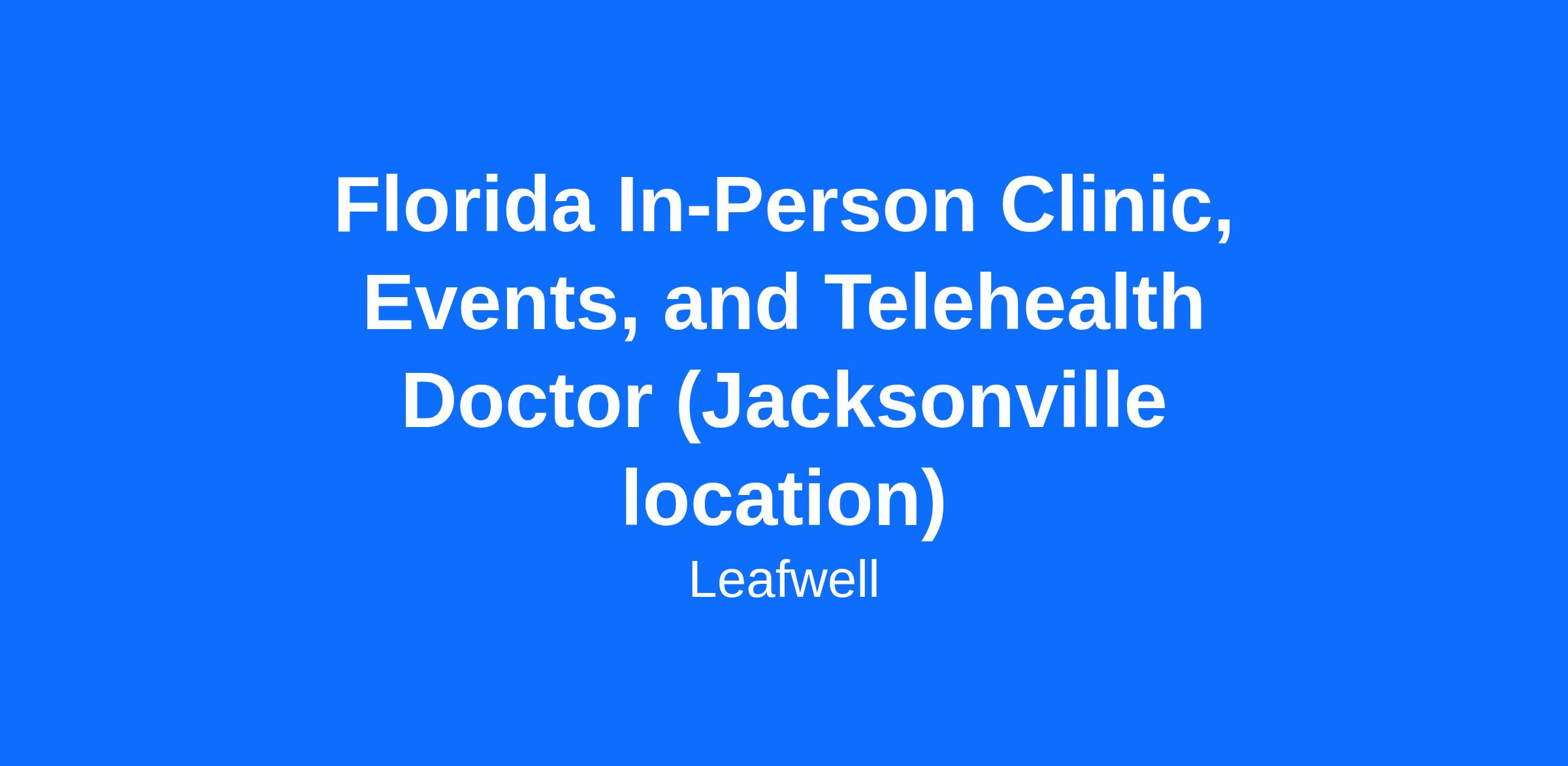 Leafwell is looking for a Florida physician who would like to join the team and certify patients for medical cannabis. We are open to applications from healthcare providers who are located near Jacksonville, Florida and believe in cannabis as medicine. Due to current Florida regulations, you must be a MD or DO.