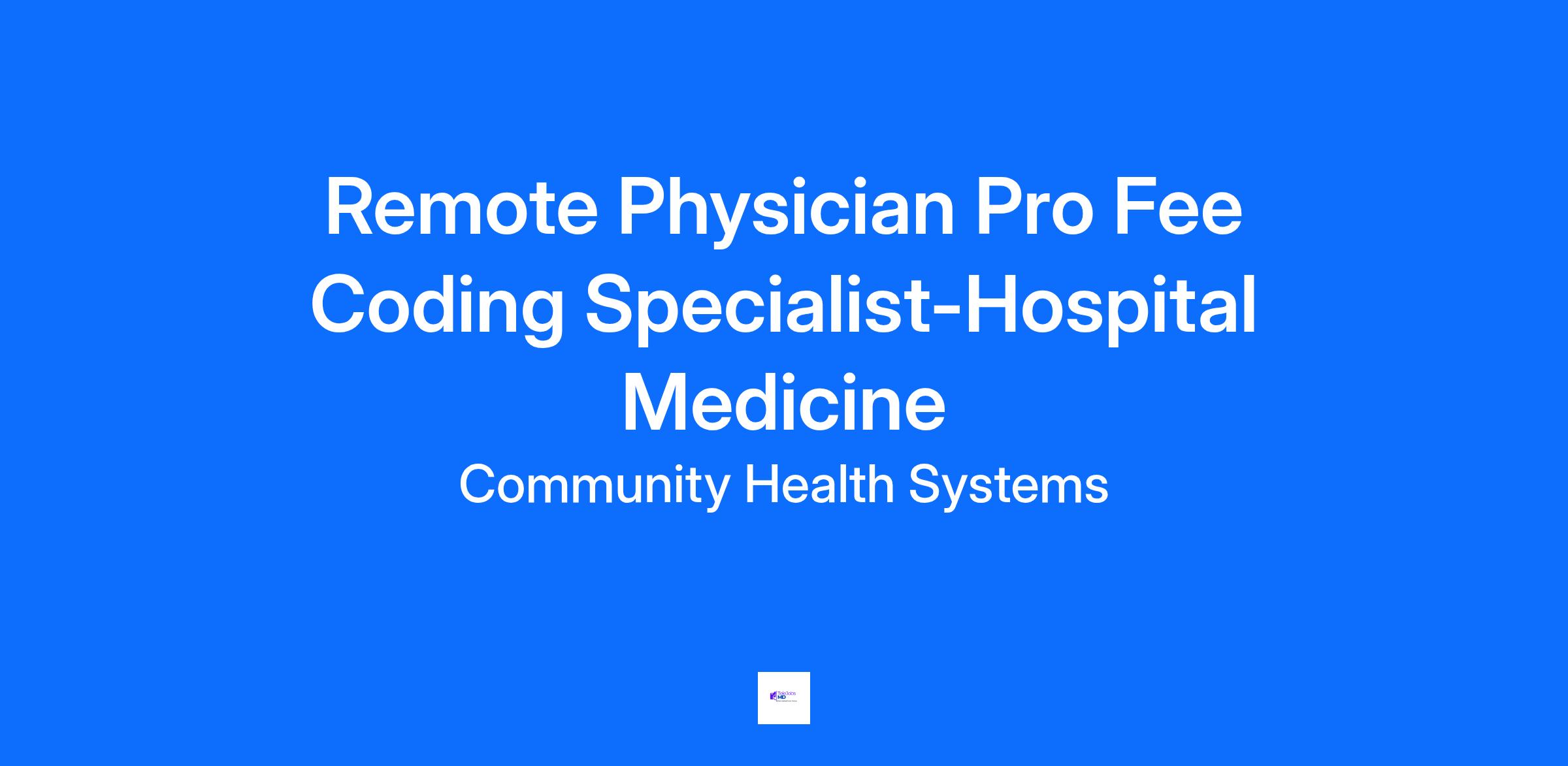The Remote Physician Pro Fee Coding Specialist-Hospital Medicine is responsible for reviewing, analyzing, and assigning accurate CPT, HCPCS, and ICD-10 codes for professional fee services documented in the medical record. This role ensures proper sequencing, modifier use, and place-of-service coding in compliance with governmental regulations, third-party payer policies, and corporate standards. The Physician Coder plays a key role in revenue cycle accuracy by identifying documentation gaps, ensuring coding integrity, and working collaboratively with internal teams to support physician coding compliance and reimbursement.
