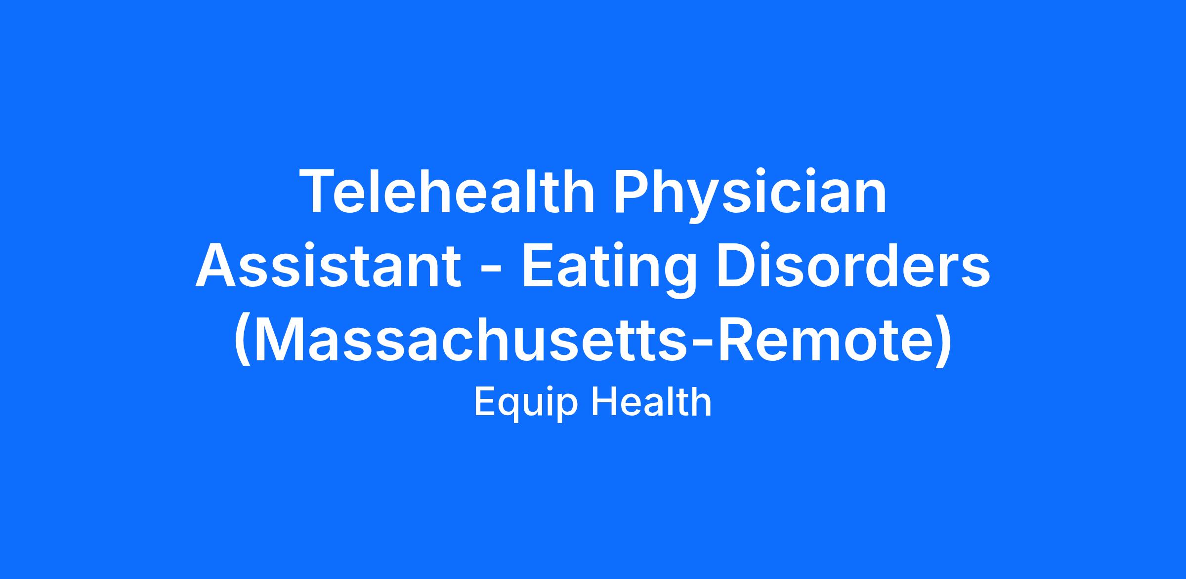 The Physician Assistant will be responsible for caring for children and adults with eating disorders via Equip’s 100% virtual Telehealth platform. Physician Assistants are essential members of Equip's 5-person virtual treatment team, working alongside a therapist, dietitian, peer mentor, and family mentor to help people recover from eating disorders.