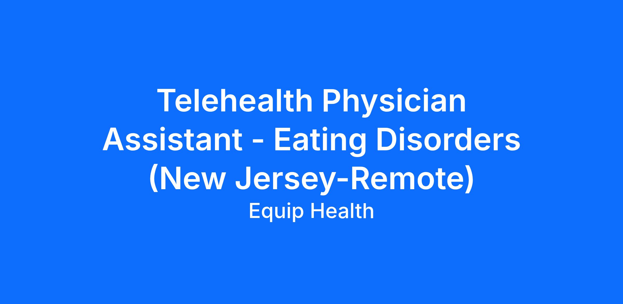 The Physician Assistant will be responsible for caring for children and adults with eating disorders via Equip’s 100% virtual Telehealth platform. Physician Assistants are essential members of Equip's 5-person virtual treatment team, working alongside a therapist, dietitian, peer mentor, and family mentor to help people recover from eating disorders.