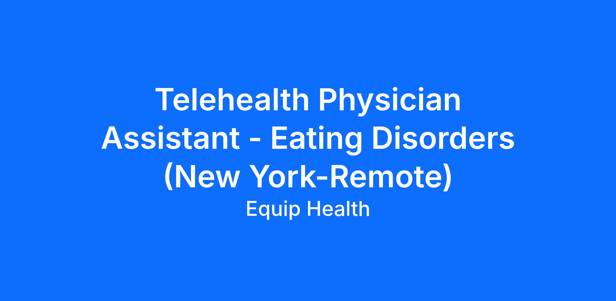 The Physician Assistant will be responsible for caring for children and adults with eating disorders via Equip’s 100% virtual Telehealth platform. Physician Assistants are essential members of Equip's 5-person virtual treatment team, working alongside a therapist, dietitian, peer mentor, and family mentor to help people recover from eating disorders.
