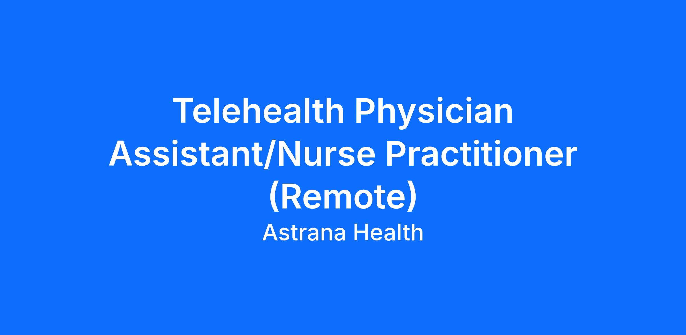 We are looking for a Nurse Practitioner / Physician Assistant to join a team that is passionate about the health of our patients. As part of the Quality Department, the Clinical Operations team leads the effort to improve health outcomes by coordinating and delivering key clinical care. Through outreach and education, we inspire patients to take a preventive approach to maintaining their health and to be active in their management of chronic diseases. Together, we strive to achieve healthy living for all through all stages of life. As a Nurse Practitioner / Physician Assistant, you will support Astrana members with education, preventative screenings, annual wellness visits and various other healthcare screenings. Through close collaboration with patients, you'll have the opportunity to positively influence behaviors that can lead to improved health outcomes. This full-time role entails conducting visits via telehealth video calls from your home office, with occasional in-clinic or home visits depending on the region.